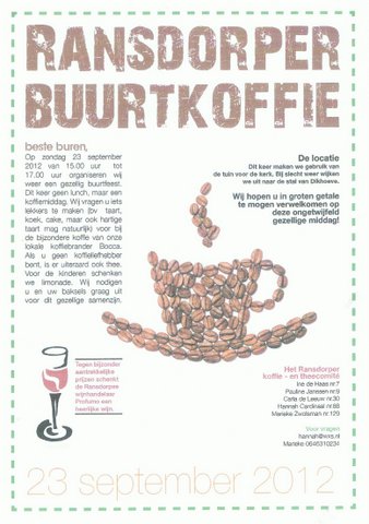 Aanstaande zondag is het zover; de eerste Ransdorper Buurtkoffie!
